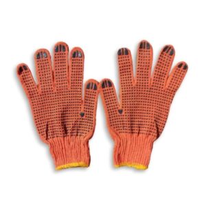 Рукавички помаранчеві бавовна з нанесенням ПВХ крапки