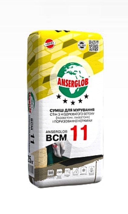 Мурувальна Суміш ANSERGLOB ВСМ 11 для мурування стін з ніздрюватого бетону і поризованої кераміки призначений для зведення внутрішніх і зовнішніх стін блоками з поризованої кераміки і теплоізоляційних ніздрюватих бетонів, таких як газобетон, пінобетон, газосилікат і т. д.. За рахунок високої адгезії до основи забезпечує монолітність, високу міцність і жорсткість зведених конструкцій. Наявність у складі суміші теплоізоляційних заповнювачів запобігає утворенню «містків холоду».