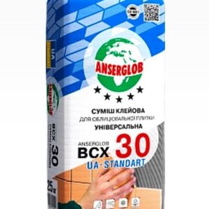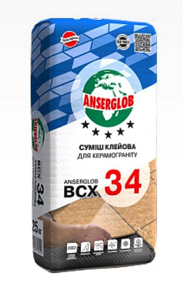Суміш клейова ANSERGLOB BCX 34 для керамограніту, призначений для облицювання бетонних, цегляних, цементно-піщаних або цементно-вапняних, а також гіпсових недеформованих поверхонь, монолітних підлог керамічною, бетонною плиткою та штучним камінням, а також плиткою з водопоглинанням менше 1% (керамограніт), в тому числі підлогових плиток великого формату. Клей можна використовувати всередині і зовні виробничих і житлових будівель, на терасах, балконах. Можливе застосування в системах підлог з водяним і електричним опаленням.