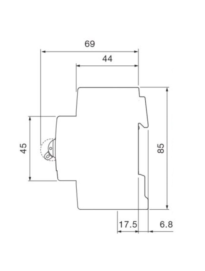 - Монтаж: на стандартну DIN-рейку (ширина 3 модулі — 52.5 мм).