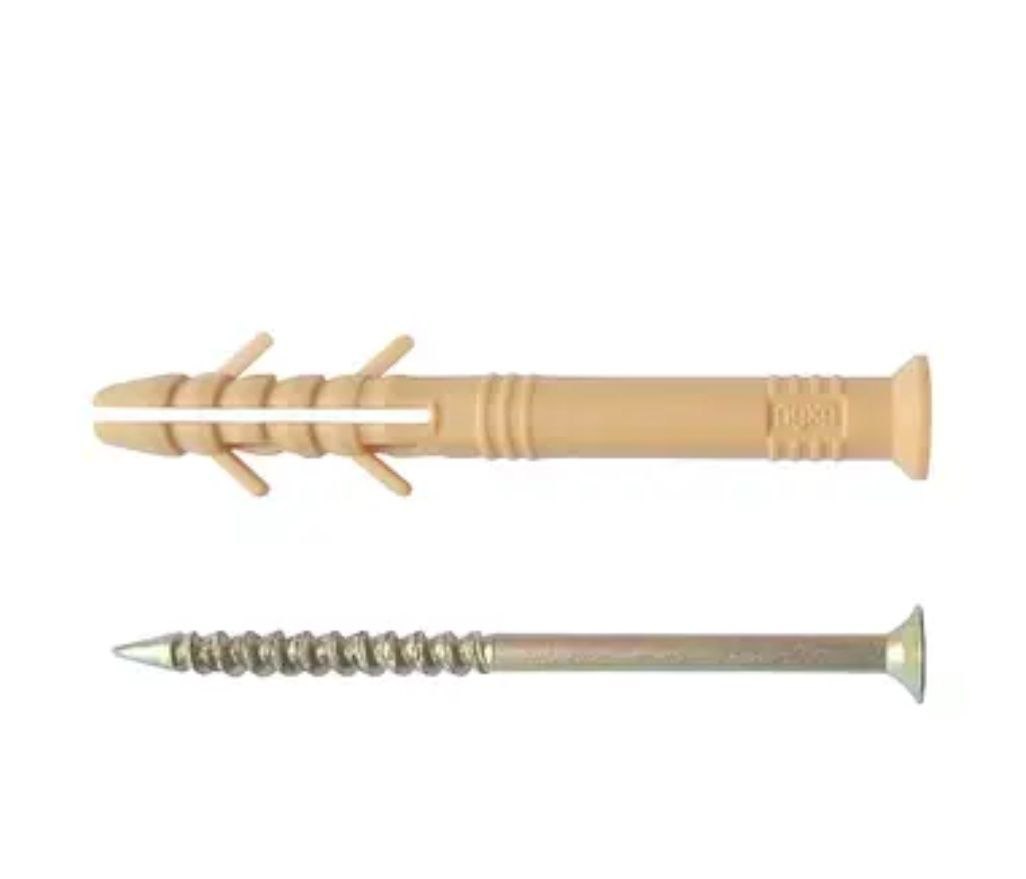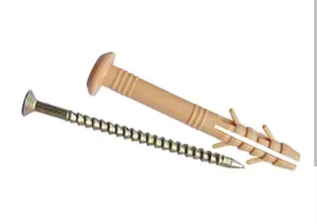 Дюбель швидкий монтаж із забивним шурупом 8х(60мм,80мм, 100мм, 120мм) завдяки спеціальній конструкції цвяха-шурупа монтаж і закріплення конструкції проводиться простим ударом молотка по капелюшку цвяха, вставленого в дюбель, внаслідок чого останній розклинюється в основі.