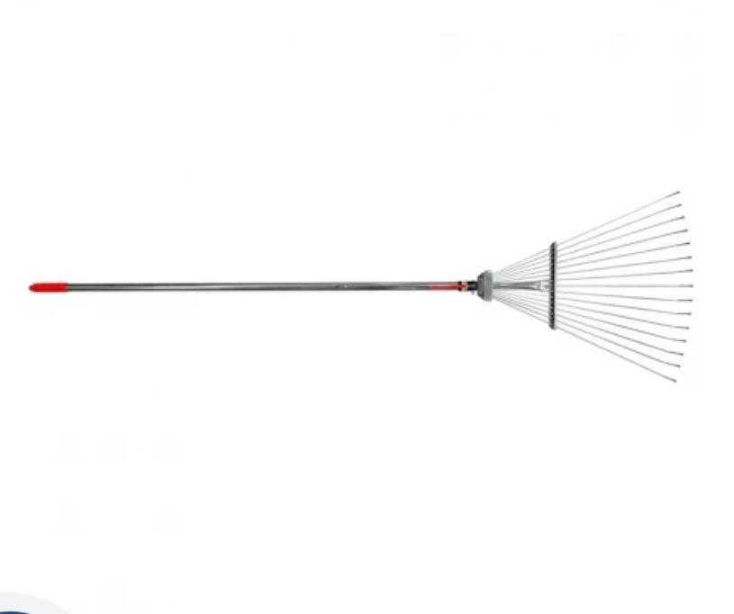Граблі віялові – ручний інструмент, призначений для збору листя, скошеної трави та садового сміття. Граблі мають механізм регулювання ширини робочої поверхні. Зуби мають вигнуту на кінцях форму і виготовлені з пружинного металу. Кількість прутків: 18 шт.