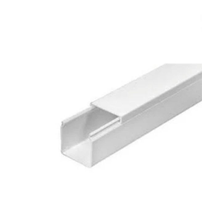 Пластиковий короб використовується для того, щоб приховати кабель або силові дроти при монтажі електромереж, або комп’ютерних систем всередині приміщення і надати їм сучасний естетичний вигляд. Має білий колір і оснащений кришкою з двостороннім замком.