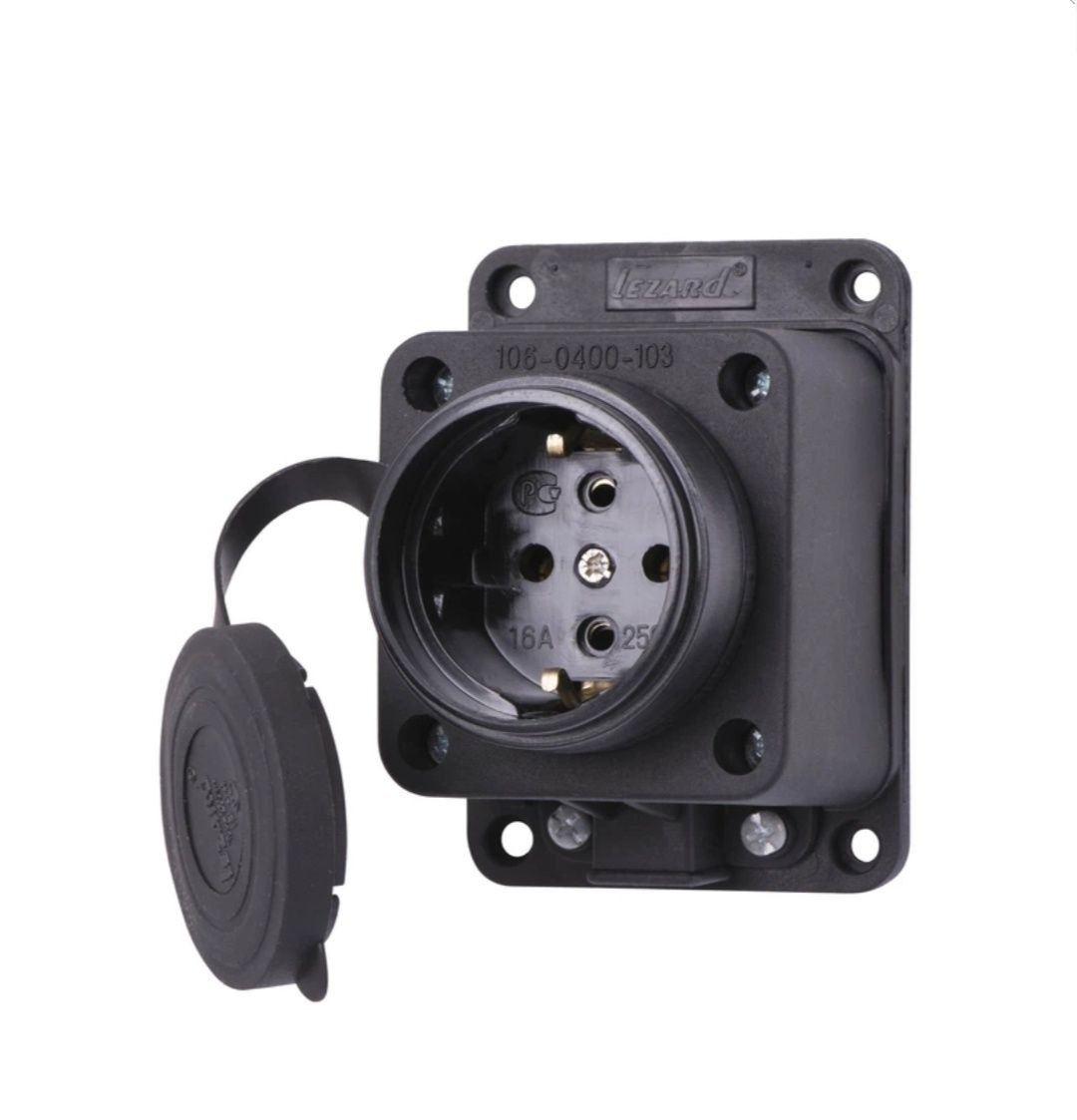 - Модель: Розетка стаціонарна Lezard IP44 2P+E Каучук (артикул 106-0400-0103).