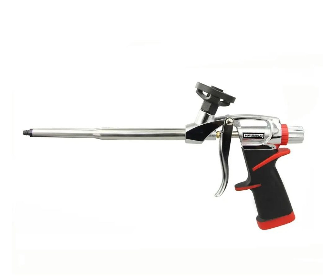 Пістолет для монтажної піни HAISSER з PTFE покриттям адаптора допоможе легко нанести піну при встановленні дверей, вікон і будь-яких інших конструкцій. Пістолет має низку переваг перед звичайними одноразовими трубками-насадками. Міцний металевий корпус з антикорозійним покриттям забезпечує надійність та довговічність виробу. Металевий курок та регулюючий гвинт дозволять з точністю налаштувати інтенсивність подачі піни. А довгий носик дасть доступ у будь-які щілини та отвори. Пістолет може використовуватися з усіма видами балонів із монтажною піною.
