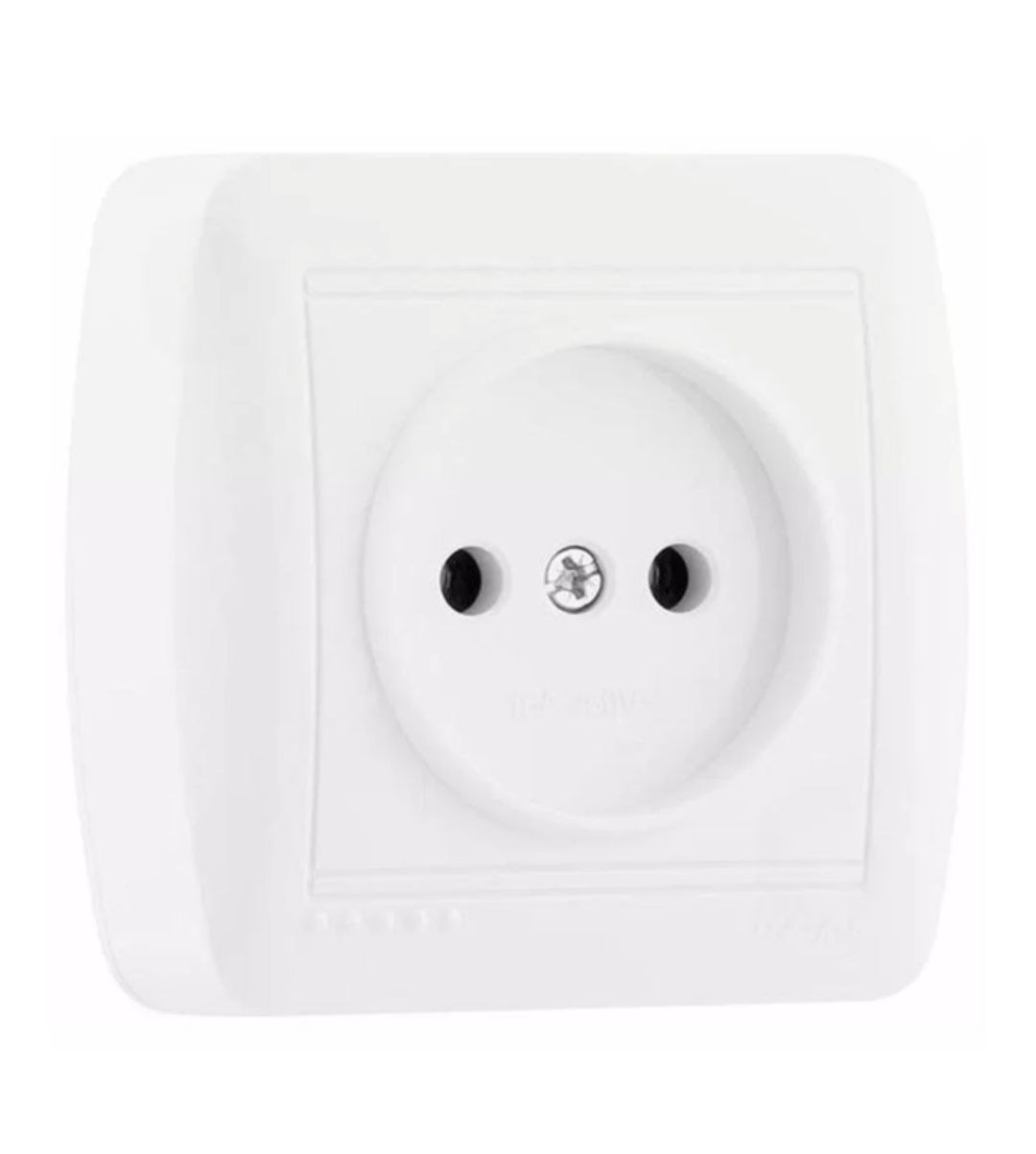 - Одинарна розетка: Розрахована на струм 16A та напругу 220-250V. Доступна у білому кольорі.