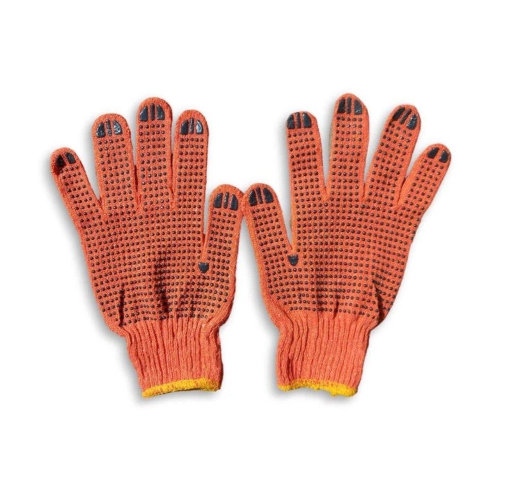 Рукавички помаранчеві бавовна з нанесенням ПВХ крапки