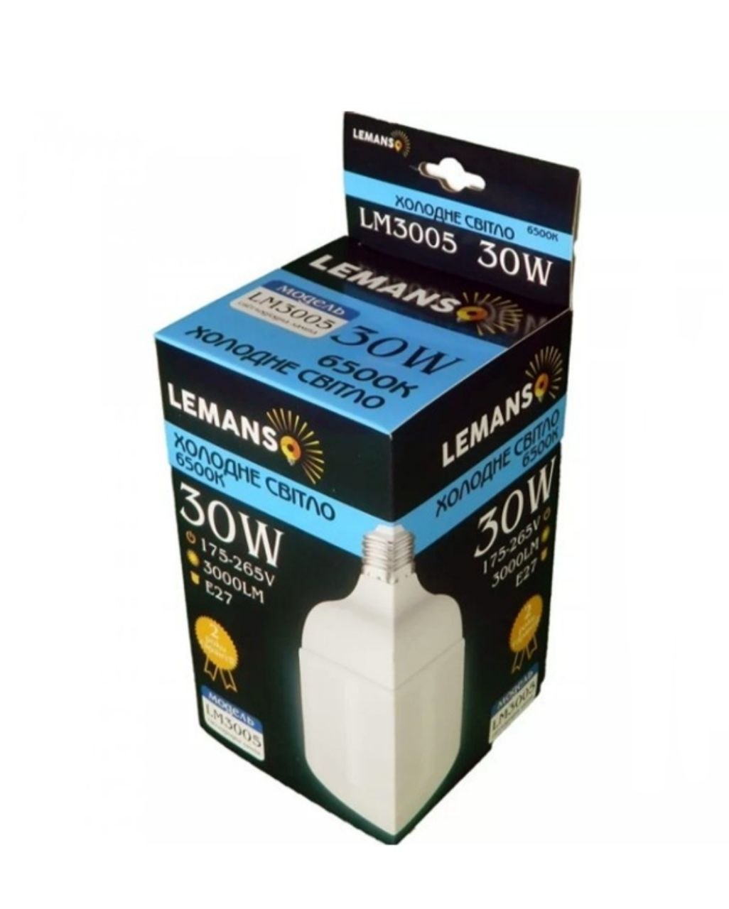 Світлодіодна лампа Lemanso 30W T100 E27 6500K (модель LM3005) — це потужне джерело світла, яке забезпечує яскраве холодне біле освітлення, еквівалентне роботі лампи розжарювання потужністю близько 200–250 Вт. Завдяки високому світловому потоку вона підходить для великих житлових приміщень, офісів, складів або магазинів.